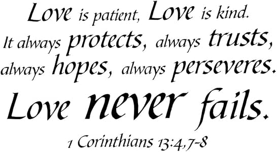 The king james version is in the public domain. 1if i speak in the tongues of men or of angels, but do not have love, i am only a resounding gong or a clanging cymbal. 5 does not behave rudely, does not seek its own, is not provoked, bthinks no evil; Love is patient, love is kind. It does not envy, it does not boast, it is not proud. It does not insist on its own way; It does not rejoice about injustice but rejoices whenever the truth wins out. Love does not parade itself, is not apuffed up; It's important to remember that paul is not writing inspirational poetry. These words are often quoted at weddings or in romantic settings and featured prominently in artwork and merchandise. 7 love never gives up, never loses faith, is always hopeful, and endures through every circumstance. 5 out of 5 stars. 4 love is patient and kind.
